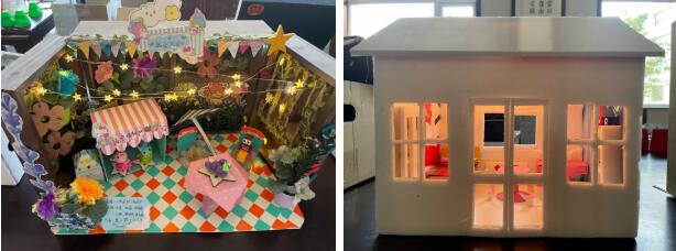 三年级开展了 “我爱我家创意大比拼”活动,孩子们利用家中的废旧材料和废弃物品,设计制作一个“我的家”的模型,并对作品的设计、制作以及创意进行一分钟演讲。