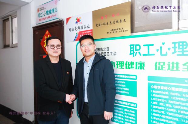 “党建+社区”是学校“园丁·初心”党建品牌的再延伸、再提升。3月2日上午,格兰德首个“党建+社区”志愿服务点在劲松三路社区心理服务站正式挂牌,合肥路街道劲松三路社区党委书记迟宗玉、党委副书记王琳琳、小学部党支部书记魏钊、中学部党支部书记李红蕾、执行校长景福兴出席挂牌仪式。