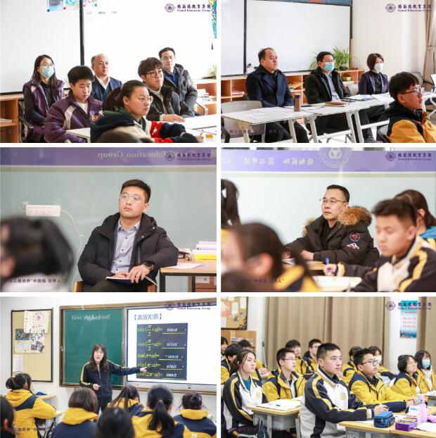 调研组一行抵达我校后,根据课表随机抽课,在两节课的时间里,分组走进了语文、数学、英语、化学、地理、音乐、美术、个人发展PD、学习技巧SS等学科课堂,深入了解格兰德课程设置、教学设计、课堂模式等情况。