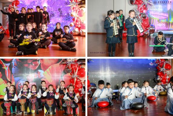 西风遇古韵,碰撞展风采。《青花瓷》中古筝与竖笛的融合,宛如高山遇流水,彩蝶遇蔷薇;口风琴吹奏的《奏响》、尤克里里弹奏的歌曲串烧、非洲鼓演奏的《听我说谢谢你》,在一律一音中,尽显幸福与美好。