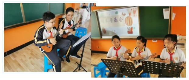 音乐艺术越来越受重视,单一的学唱已经满足不了孩子们渴望知识、渴望自主的学习要求,我校结合新课标提出以及根据孩子的生命成长特点,在五年级、六年级开设了尤克里里课程,培养孩子的创新精神与实践能力,激发学生不同方式的音乐表达能力,营造校园随处有音乐的动感校园。