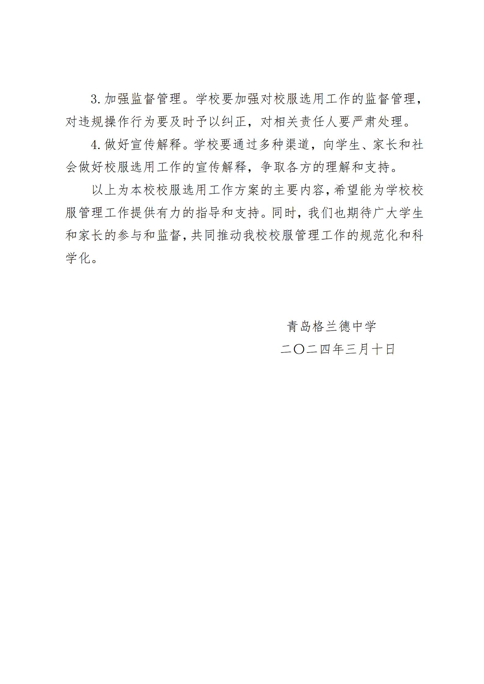 青岛格兰德学校2025-2026学年学生制服装质检合格公示