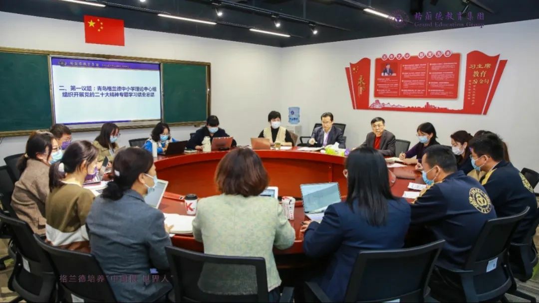 为全面学习、把握、落实党的二十大精神,引领党员教师把思想和行动统一到党的二十大精神上来,坚定不移地把党的二十大提出的目标任务落到实处,根据党中央部署和省委、市委有关要求,2022年11月17日,青岛格兰德中学党支部组织召开关于中国共产党第二十次全国代表大会精神专题学习会。青岛格兰德中学党支部书记李红蕾领学,青岛格兰德中学党支部全体党员教师参加学习会。