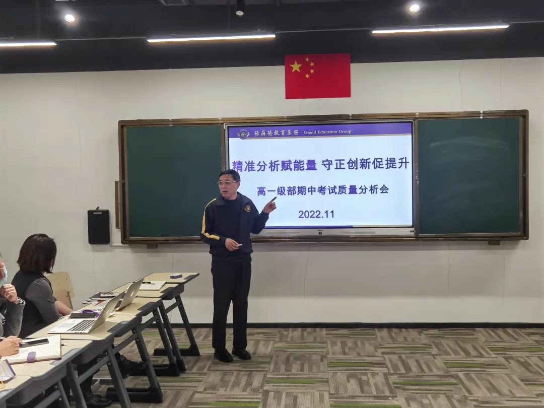根植沃土育新苗,齐心协力开新篇,为切实提高教育教学质量,科学精准诊断问题,及时调整教学策略,11月23日下午,我校高一年级召开期中考试质量分析会。格兰德教育集团执行校长高福生、教学管理中心主任李红蕾、高中部综合办公室主任王瑜,德育办公室主任王颖慧以及高一年级全体教师参会。会议由高一级部主任柯琳主持。