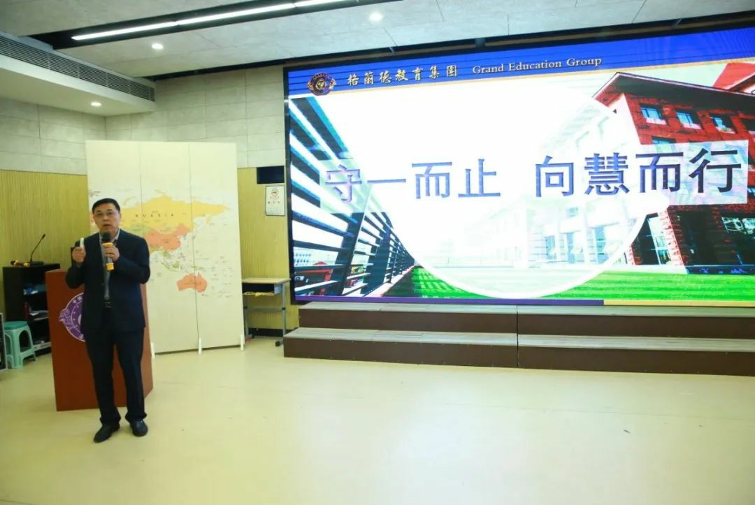 为用文化引领学校发展,在全体师生中形成共同认可的精神内涵,在格兰德20周年校庆之际,学校将文化理念进行了梳理、更新、升级,执行校长高福生做了《守一而止 向慧而行》为主题报告,向全体教职工就文化理念进行解读、诠释,构建起独具格兰德特色的通慧教育文化体系。