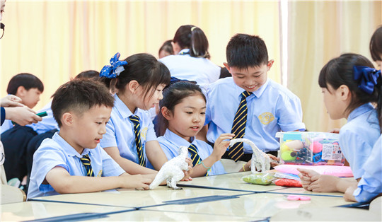 学生根据兴趣选课走班。开设机器人、管乐团、武术、舞蹈、合唱、国家地理、Drama、茶艺花艺、古琴、篮球、轮滑、国际象棋、国画、艺术创想等近30个社团。