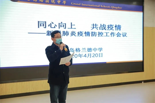 ☞ 4月20日,青岛格兰德中学“同心向上,共战疫情”新型冠状肺炎防控工作会议在多媒体会议室举行,疫情防控领导小组及工作小组全体成员参加会议。