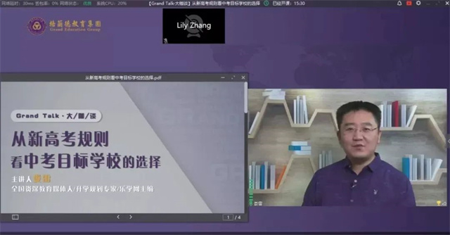 ☞ 5月17日,青岛格兰德中学特别邀请全国资深教育媒体人、升学规划专家、乐学网主编娄雷老师做客【Grand Talk·大咖谈】线上直播间,就青岛初升高家长最为关注的新中考政策进行详细的解读,带领家长从新高考规则看中考目标学校的选择。娄雷老师通过全方位、多维度的专业讲解,引导深陷焦虑和迷茫的考生及家长坚定信心、全力以赴备战中考。