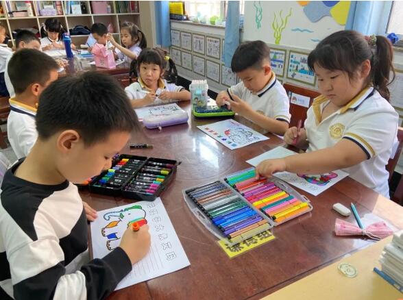老师们还送给孩子们第二个礼物,那就是读写绘课程。它不简简单单是一幅幅画面,一个个汉字,它蕴藏的是我们的人生;童年不是一个静止的房间,它是一段由浪漫到精确,由粉红到天蓝的彩色阶梯。