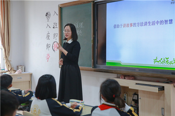 这节课,谭老师先用厦门大学易中天教授所讲的“摆谱”小视频导入,引导学生思考故事思维的重要性;接着,谭老师带领学生品读伊索寓言《蚊子和狮子》,引导学生用删除法理解这则寓言的寓意,并明确了故事思维的必备要素——差异和因果。最后,谭老师请同学讲《西游记》中“偷食人参果”的故事,引导学生探寻形成故事思维的具体方法。