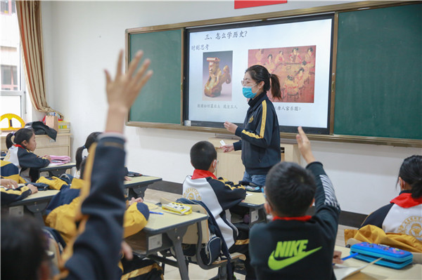 宋丽君老师以猜字引入,“历史”两个字从甲骨文到大篆、隶书的变化,让孩子们了解历史就是人们经历过的事情。由此思考我们为什么学习历史?孩子们畅所欲言,学习历史可以知兴替,学史可以明智。从生活细微处,学习历史可以让我们了解文物背后的故事,探索历史的未知之谜。我们一起发现历史电视剧中的小错误,比如唐三彩作为随葬品不能摆放在室内,《三国演义》中不会出现玉米等。