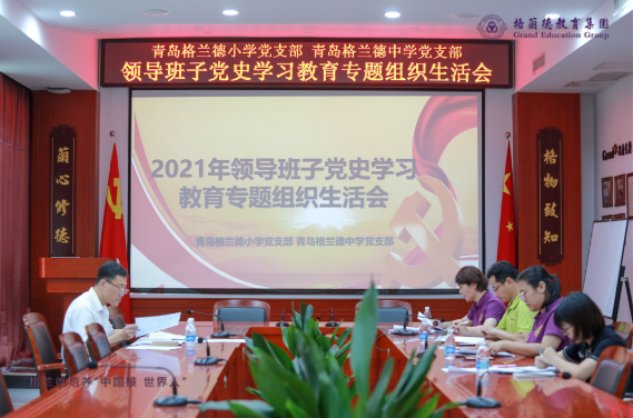 为深入学习贯彻习近平总书记在党史学习教育动员大会上的重要讲话精神和在庆祝中国共产党成立100周年大会上的重要讲话精神,根据中共青岛市委教育工作委员会《关于召开党史学习教育专题组织生活会的通知》要求,8月20日上午青岛格兰德小学党支部、青岛格兰德中学党支部召开2021年度领导班子党史学习教育专题组织生活会。青岛市教育局家庭教育处三级调研员栾宏业同志到会指导。
