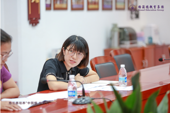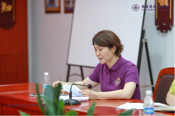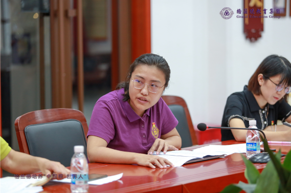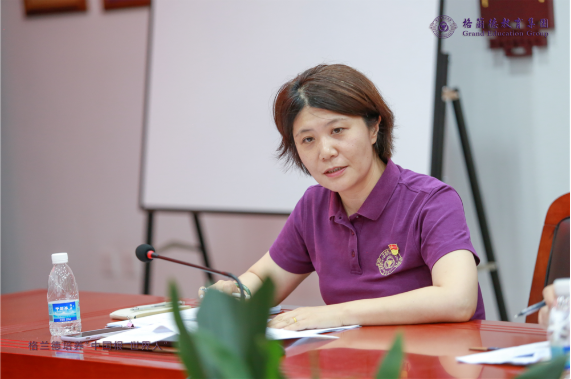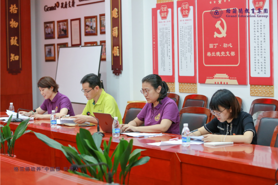 青岛格兰德中学党支部书记李红蕾主持会议