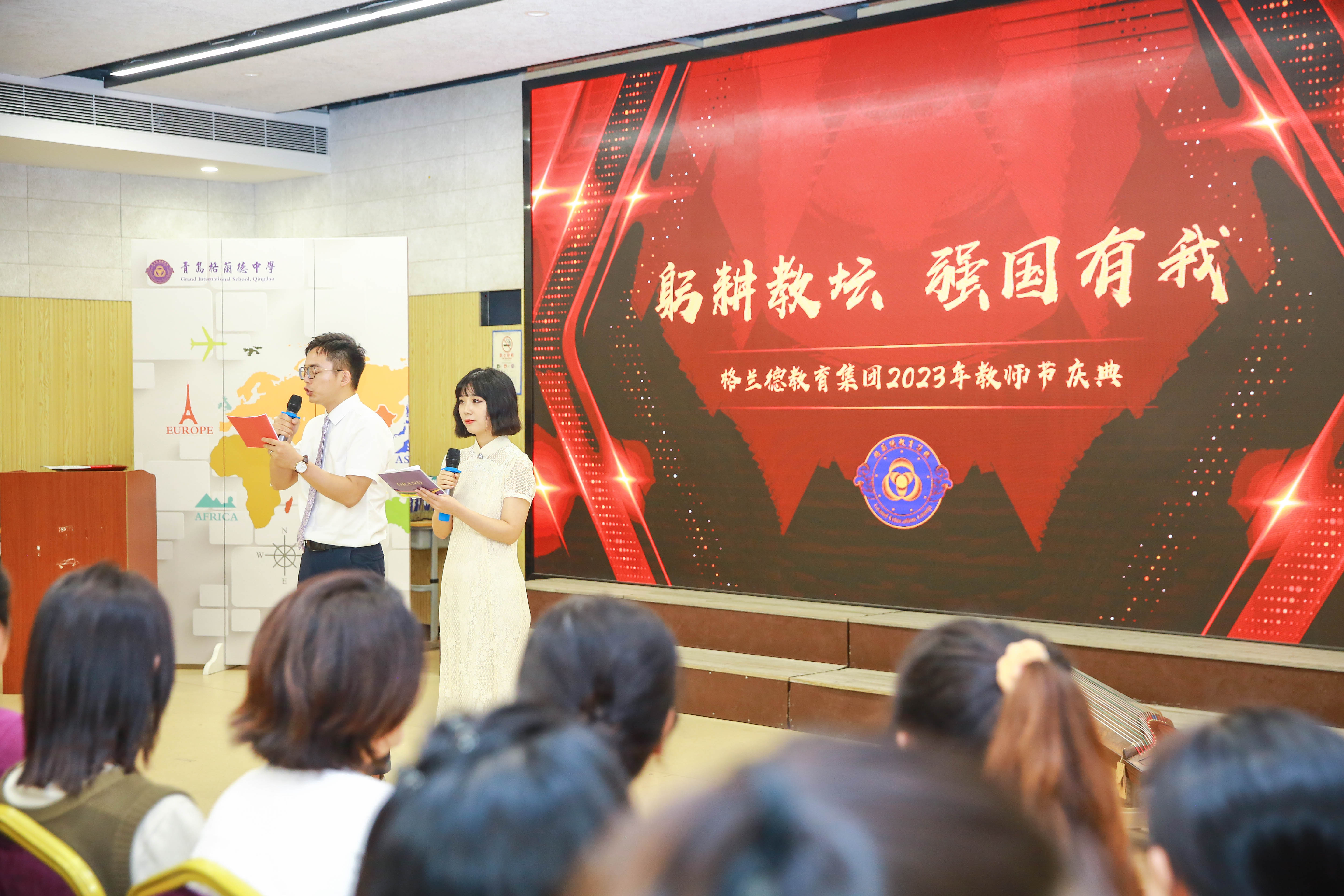 傍晚时分,“躬耕教坛,强国有我”格兰德教育集团2023年教师节庆典活动隆重举行,全校教职员工济济一堂,共同庆祝这个属于老师的节日。