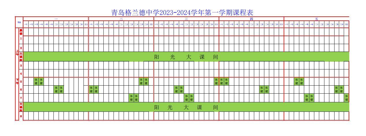 青岛格兰德中学高中部2023-2024学年第一学期体育课程表公示