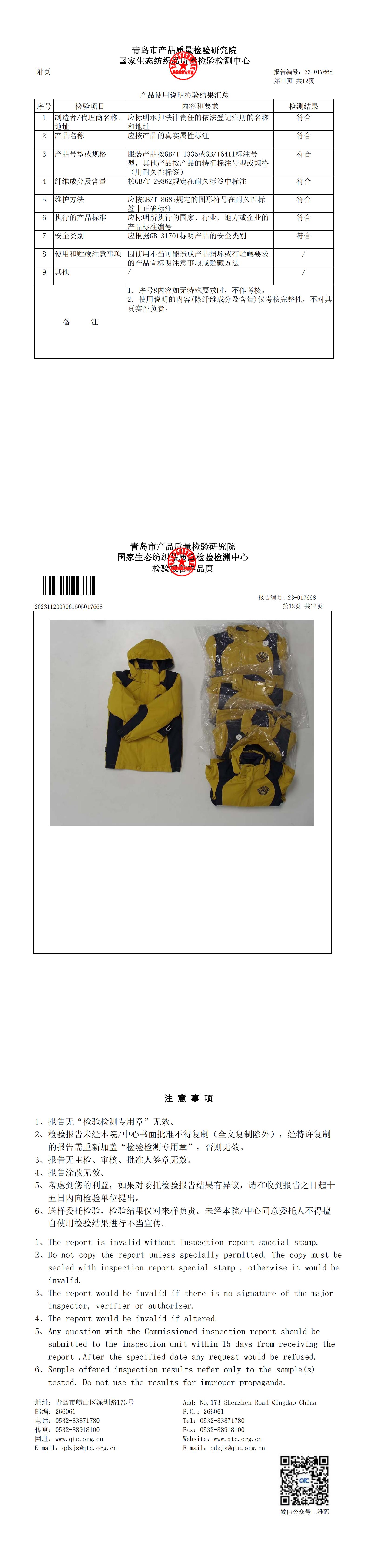 厂家冬季校服质检报告