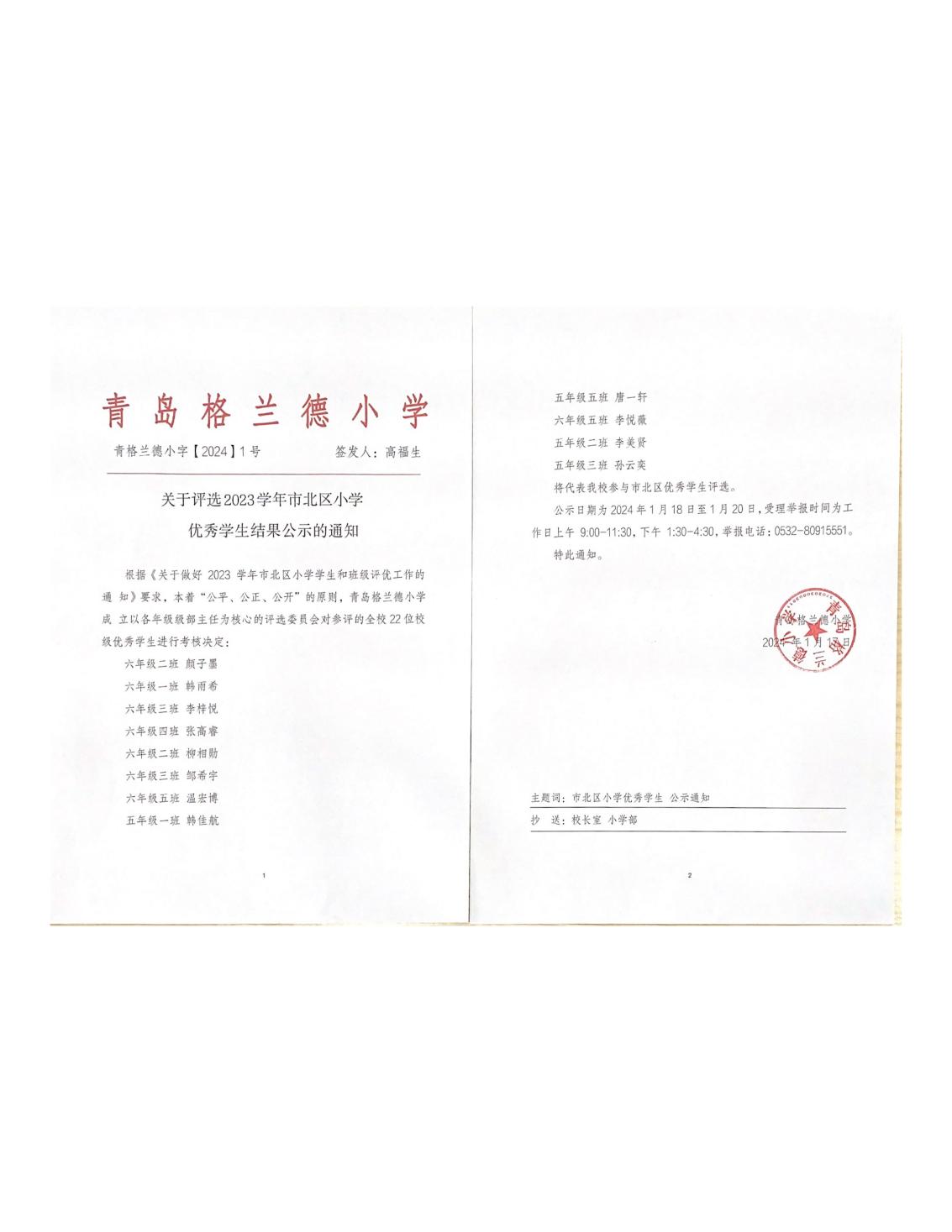 青岛格兰德小学2026年春季教辅材料征订情况公示