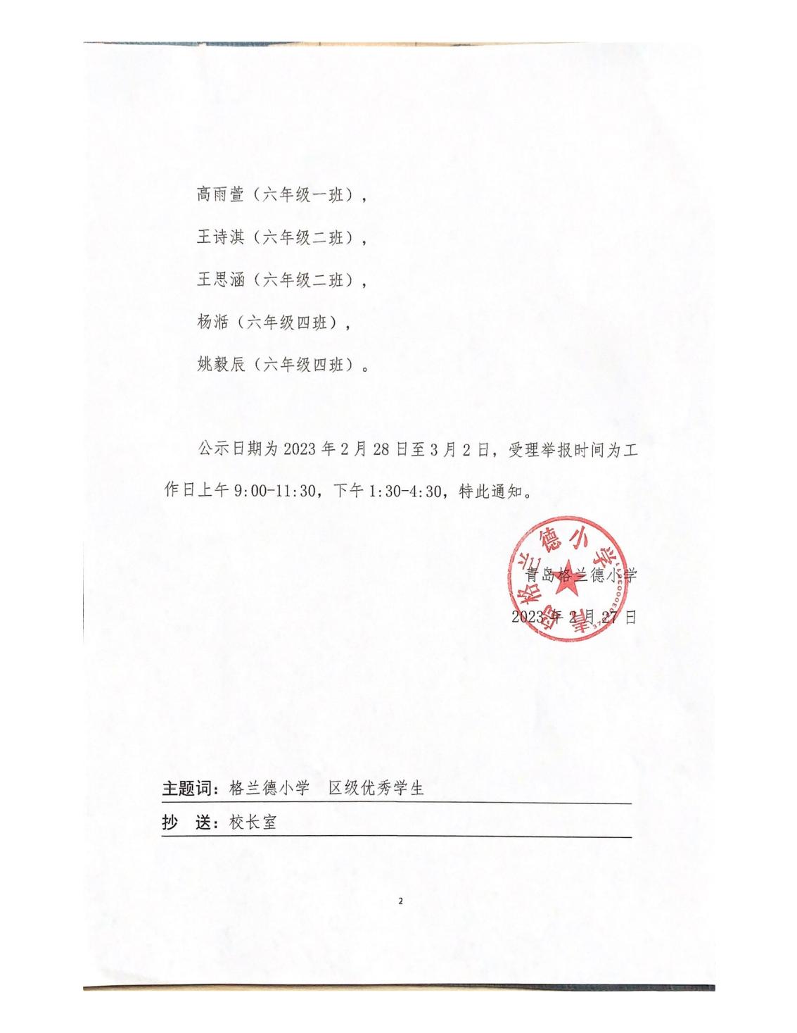青岛格兰德小学2025-2026学年度第二学期体育、艺术课表公示