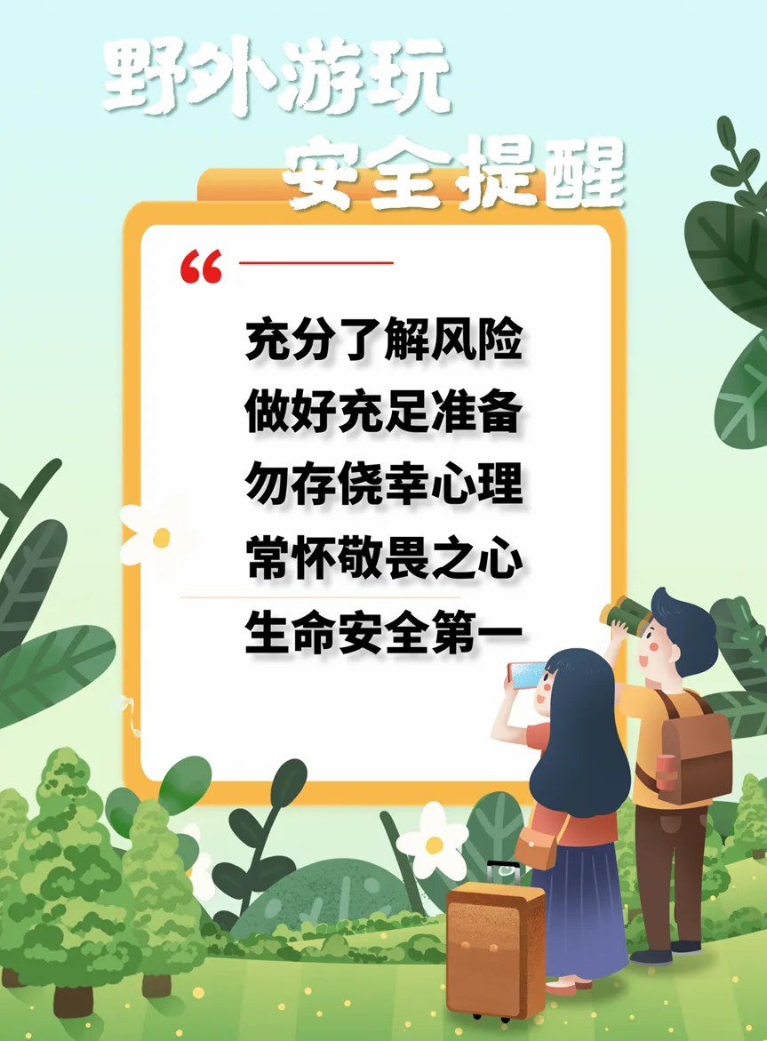 暑假出游,安全第一在野生网红打卡点游玩前一定要注意周边有无设置围栏和警示标志当地政府有无发布安全警示如果有相关警示一定要谨遵警示内容远离野生网红打卡点不能心存侥幸心理