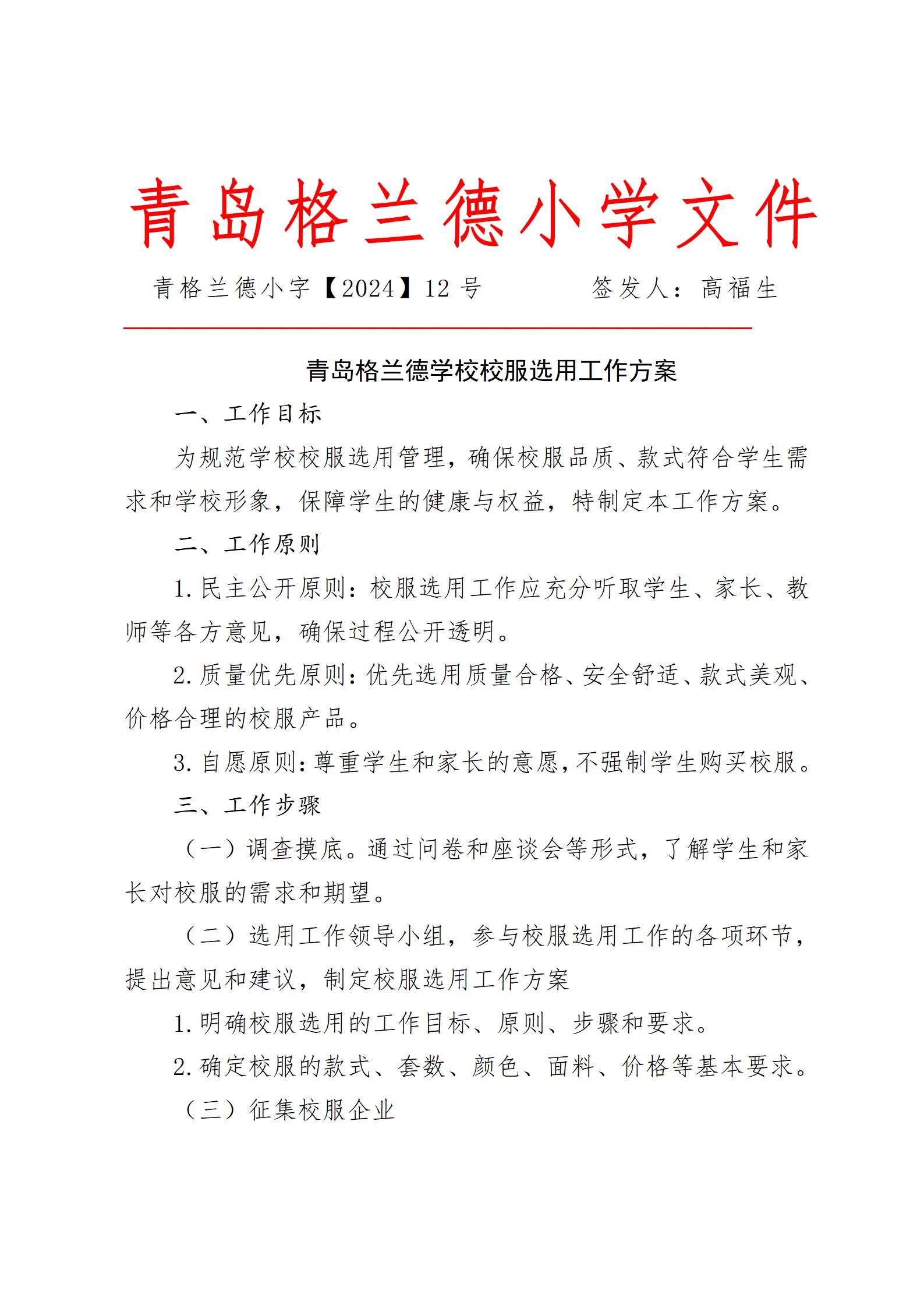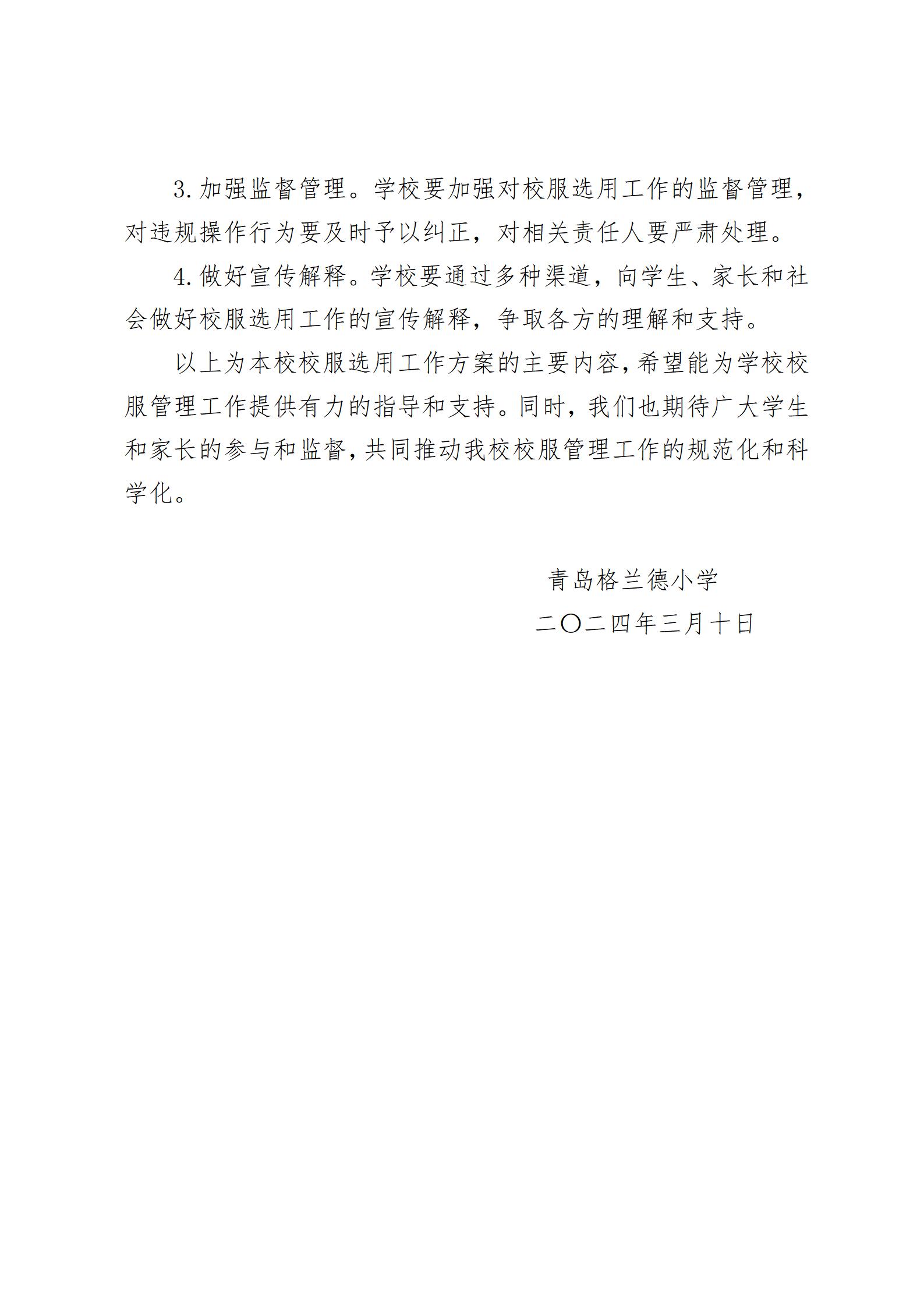 青岛格兰德学校校服选用工作方案