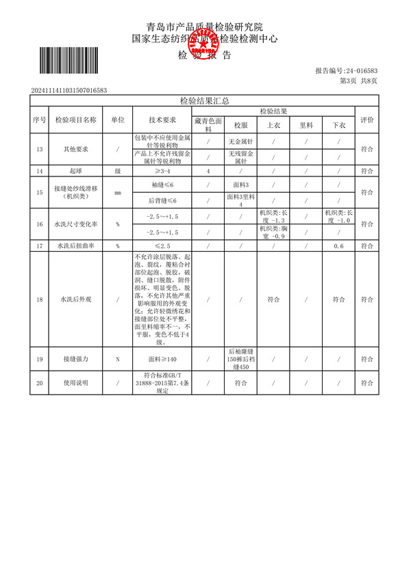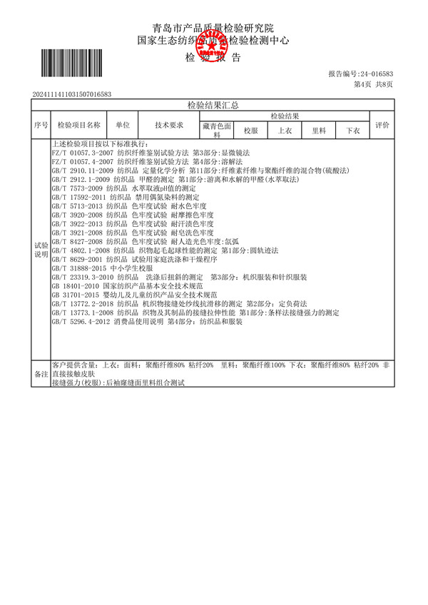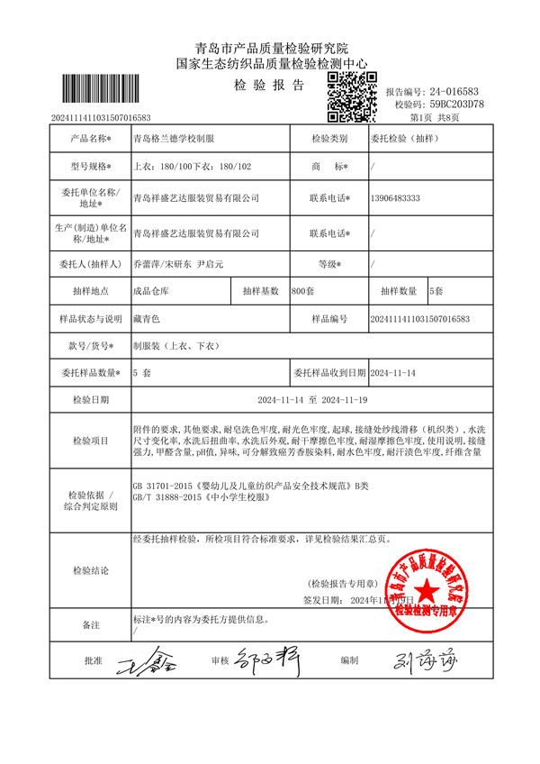 青岛格兰德小学青岛格兰德中学2024-2025学年学生制服质检报告公示