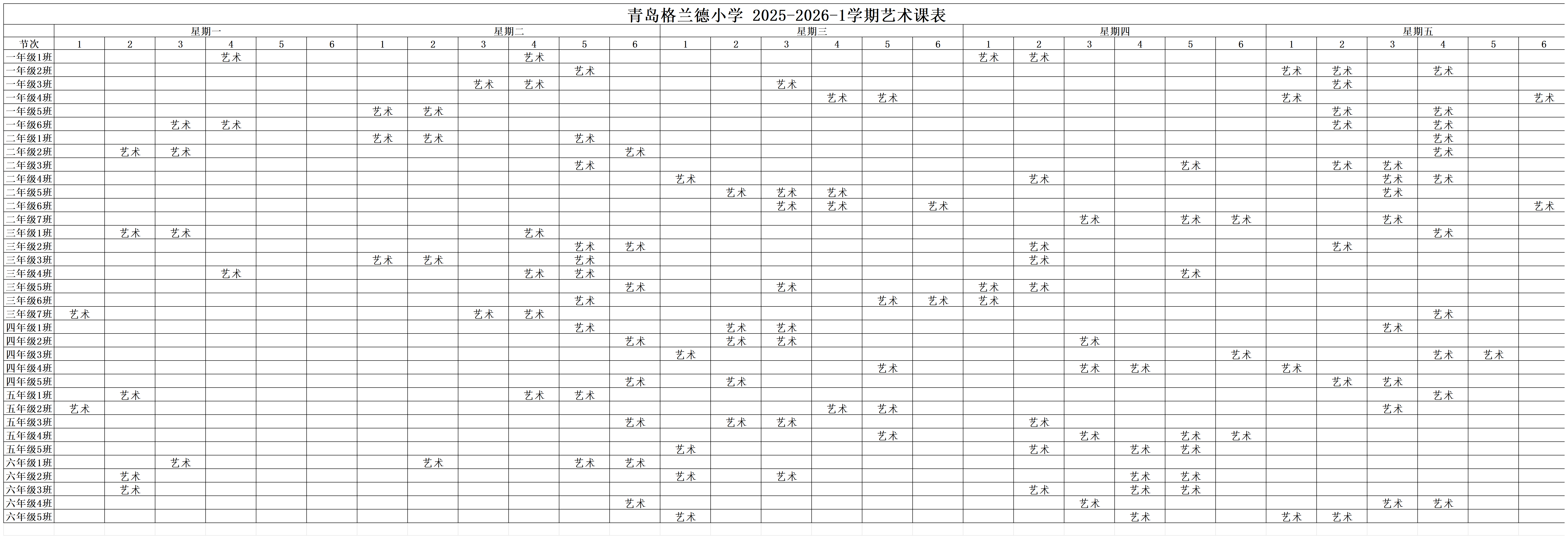青岛格兰德小学2025-2026学年度第一学期艺术课表公示