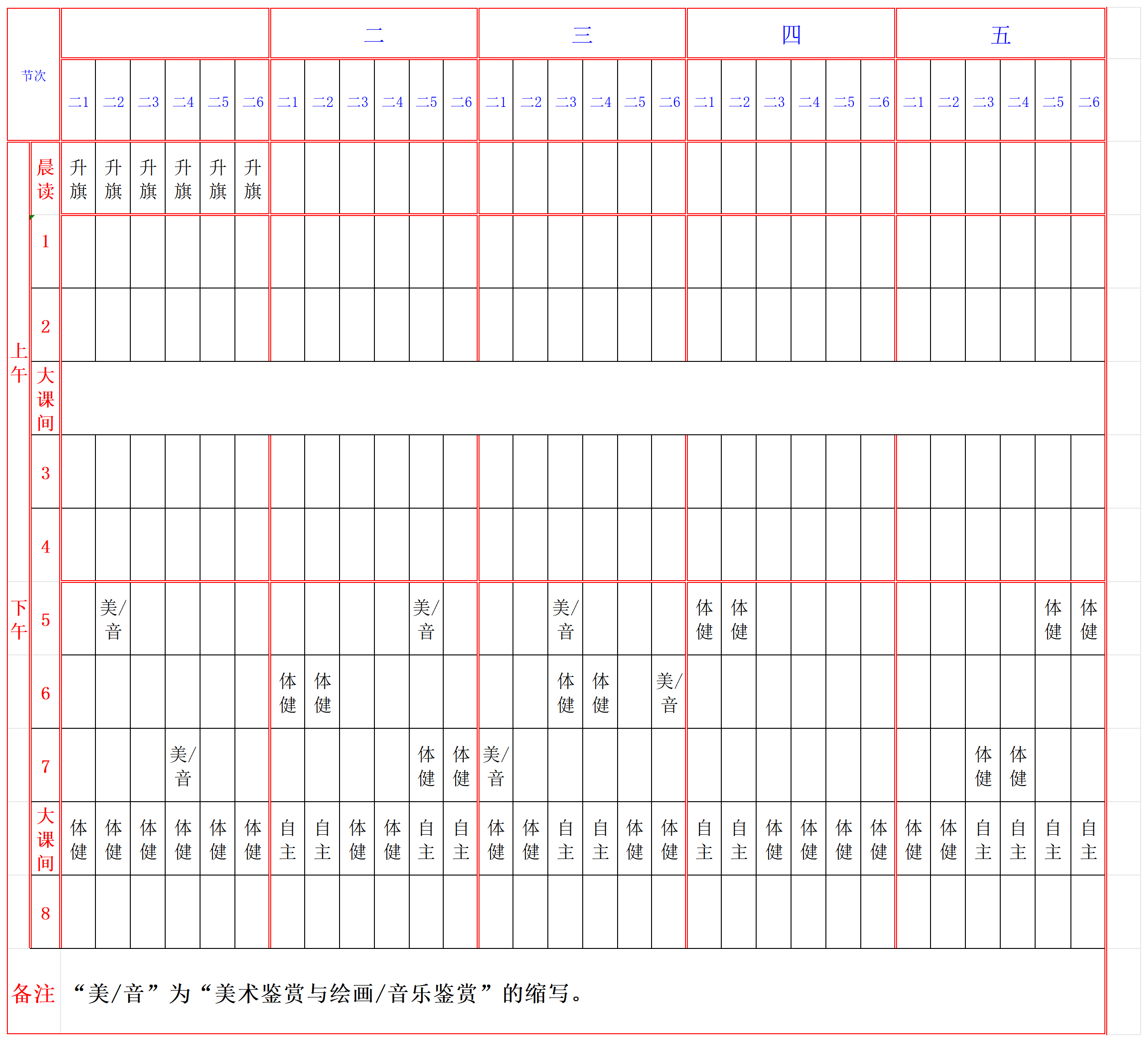 青岛格兰德小学2025-2026学年度第二学期体育、艺术课表公示