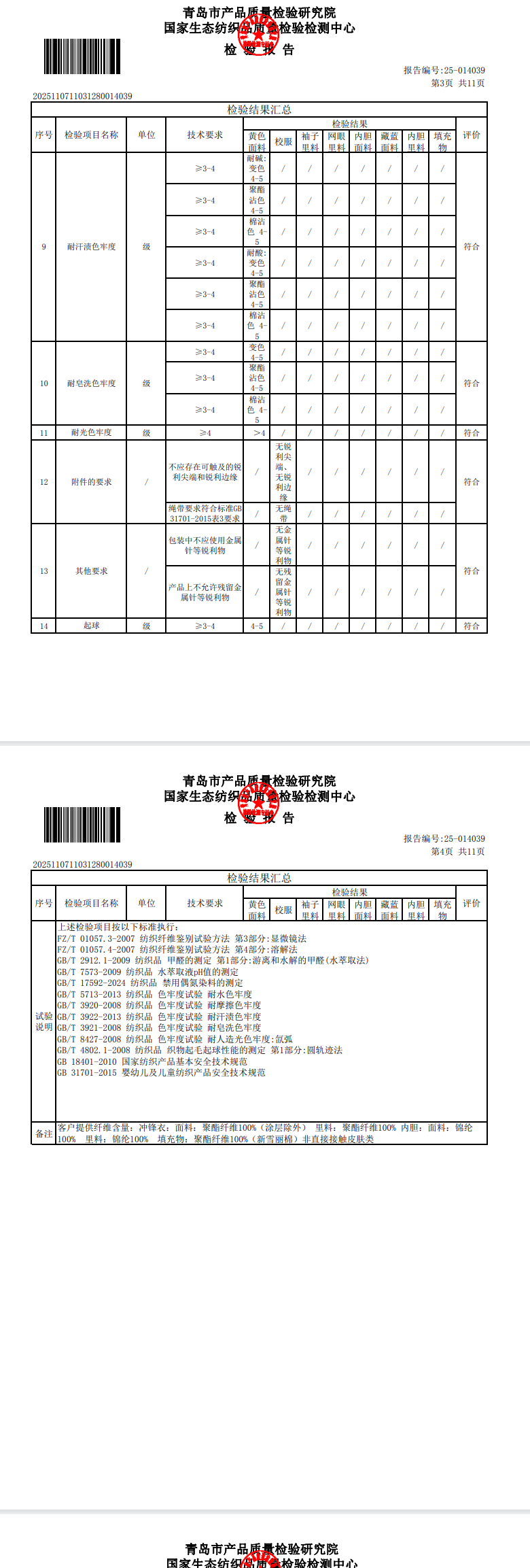 青岛格兰德学校2025-2026学年学生线背心质检合格公示
